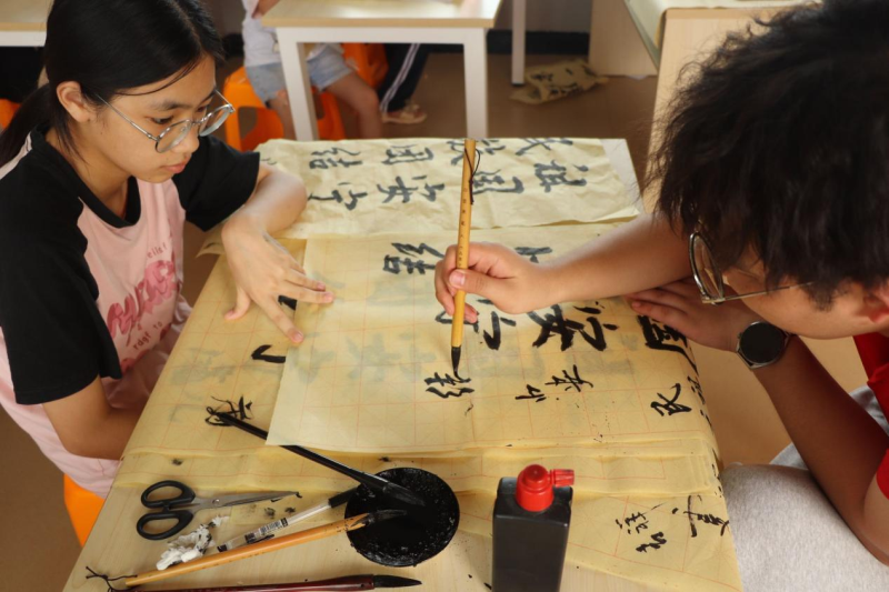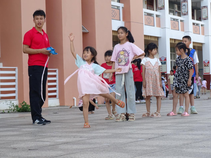 实践团成员在渠黎镇中心小学、文化站开展了少年儿童民族团结“六个一”爱心支教活动:上一次民族团结小课堂、学一个民族歌曲、做一次民族手工艺品、讲一个广西民族英雄故事、体验一次民俗活动、举办一场民族运动会。根据招收学生不同的年龄、兴趣和特点,有针对性开设了“乐音灵动阁”“灵心巧手园”“墨香追梦堂”“炫彩画艺园”“民族体育场”等五个特色培训班。通过开展爱心支教,让民族团结的种子在少年儿童心中生根发芽,增强他们的民族认同感和国家意识,激发对伟大祖国的热爱。