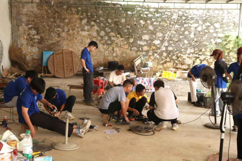 队伍在三哨村村委开展电器维修工作,从7月13日开始,三天内,维修小组共修好村民提供的故障电器61台,包括电风扇,电磁炉和电热锅等。学生们辛勤的劳动获得了当地村民的肯定,学生们也表示,每当看到村民收到修好的电器而脸上洋溢出喜悦时,内心也会感到满足。