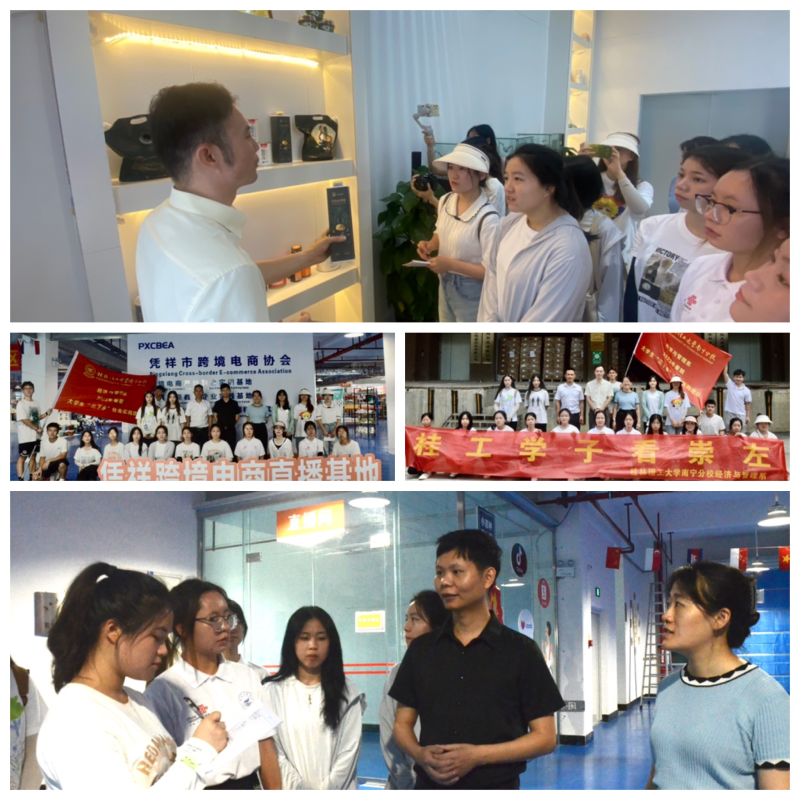 乡村振兴,产业先行。“乡村振兴”队先后前往宋城村内的山羊养殖、智慧蜂箱养殖、宋城悦泉矿泉水等特色农业基地,以及凭祥市的盐津铺子、生和堂、三诺集团和跨境电商平台等特色产业园参观学习。通过参观产业园、与管理人员交流,并观察产品的生产、管理和销售过程,收集到当地振兴产业的基本情况和目前发展中遇到的困难和问题,队员们随及展开调研报告工作的撰写,将专业所学与社会实践紧密结合,利用所学技能助力实现乡村振兴,用实际行动突显新时代青年的责任与担当。