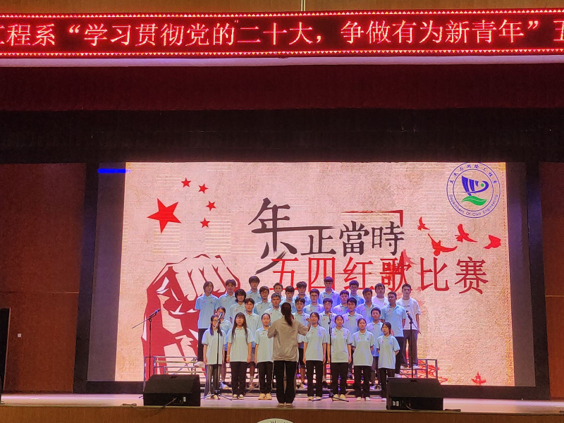 参赛的班级同学展现出朝气蓬勃的精神面貌,歌唱内容紧扣“学习贯彻党的二十大,争做有为新青年”主题,演唱《黄河大合唱》、《强军战歌》、《我和我的祖国》、《中国》等一首首经典歌曲。经过激烈角逐,最终造价22-1班和建工22-1班荣获一等奖。比赛结束,系党总支书记黄文学老师对本次比赛进行了点评。黄文学老师勉励同学们要高举五四火炬,深入学习贯彻党的二十大精神,以饱满的热情和昂扬的斗志,在学业、工作上开拓进取,不断创新,谱写出属于自己的崭新篇章。