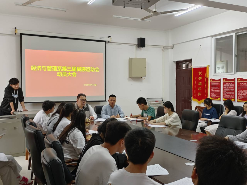 为了以最好的状态迎接本次少数民族运动会的顺利开展,经管系各项筹备工作紧锣密鼓地持续进行着。4月14日,经管系组织开展了第三届民族运动会动员大会,经管系党总支副书记兼学工组组长陈曙钰老师、团总支书记陆吉瑞老师、出席会议,经管系团总支·学生会全体成员参加会议。