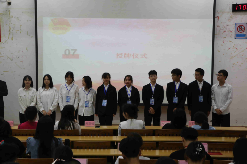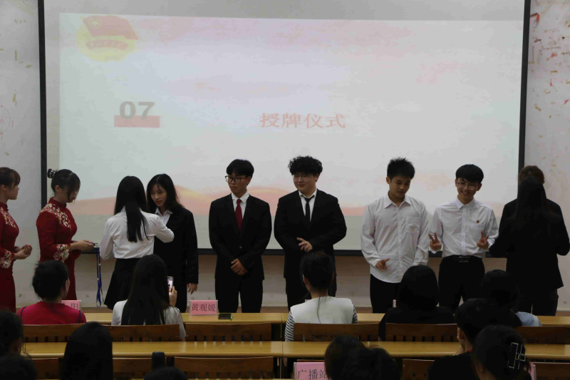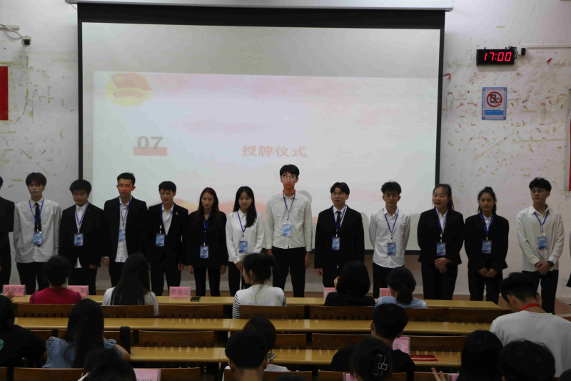 大会开始,主持人致开幕词,介绍出席嘉宾、宣布大会开始。大会进行第一项:全体成员集体奏唱中国共产主义青年团团歌。大会进行第二项:计算机系团总支副书记罗燕妮发表讲话,总结过去一年的经验与不足,表达对各团体未来的展望。大会进行第三项:计算机系团总支书记黄观媛宣读计算机系各团体新任委员名单,宣读完毕进行授牌仪式。 大会进行第四项:计算机系团总支书记黄观媛老师上台发言并作工作展望。