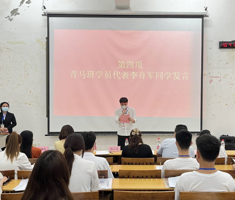 最后,在“青马工程”开班仪式暨开班第一课在团歌中圆满结束。此次“青马工程”旨在通过理论学习、社会实践、技能培训和志愿服务等多种方式,进一步坚定学生骨干“四个自信”,做到“两个维护”,提升学生干部思想理论水平和业务素养,为迎接二十大的胜利召开贡献青春力量。