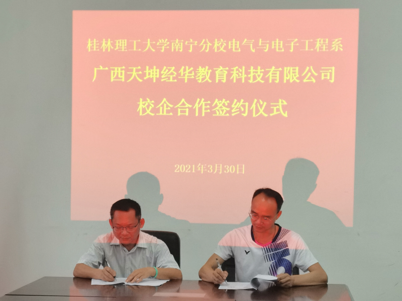 3月30日,我系与广西天坤经华教育科技有限公司在4208会议室举行座谈并签约校企合作协议。系部领导班子参加座谈及签约仪式。