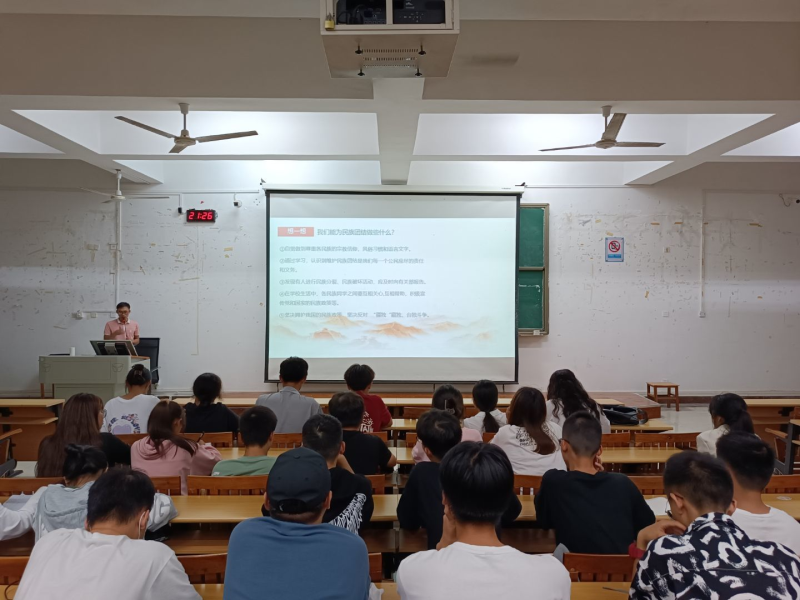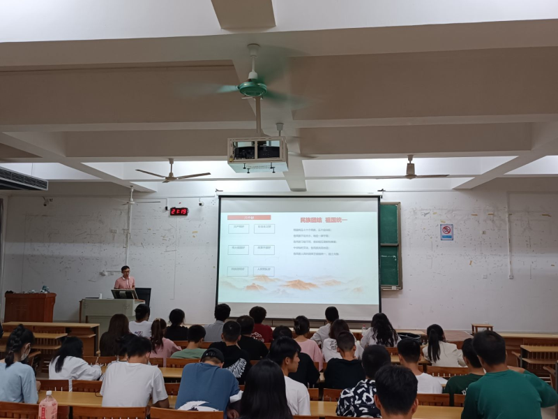 在本次团课中,韦选建老师从“认识我国的民族政策”、“如何维护民族团结”等多个方面展开授课,让同学们充分了解民族团结的重要性,始终明确新时期我国民族工作的主题,紧紧围绕“中华民族一家亲,同心共筑中国梦”总目标开展团支部相关工作。团课最后,韦选建老师还从如何落实《青年大学习》、团员教育评价的重要性、如何完善“智慧团建”系统各个模块的信息等多个方面,加强对各团支部书记和组织委员进行培训,增强了各团支部干部的工作能力,积极引导广大共青团员加强理论学习,提高思想觉悟。