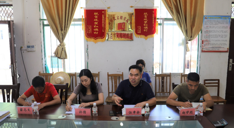 在念典村,驻村第一书记伍章余、硕龙镇宣传委员许倩热情接待了罗盛锋校长一行,双方进行了座谈交流。第一书记伍章余介绍了念典村历史、乡村产业等基本情况,着重介绍了念斗屯红色资源底蕴历史、稻田养螺产业等方面的具体举措和工作成效,简要叙述双方对于乡村振兴的发展意向及需求。