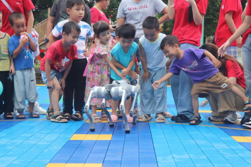 上午9时,广西科技馆的科普大篷车开进那坡村文化广场,立即吸引了数百名村民和学生前来参观。活动现场,会跳舞的机器狗表演引得孩子们阵阵欢呼,移动3D电影展播让村民们第一次体验到了科技带来的视觉震撼。冶金学院的学生们还精心准备了"彩虹牛奶""气球火箭"等趣味科学实验。