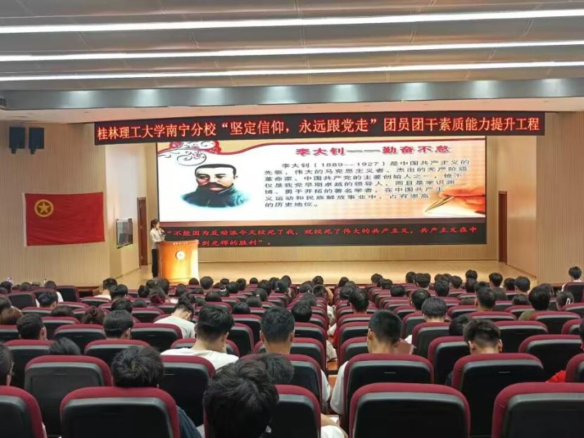 讲座在团歌中拉开序幕。吴松霖同学首先带领大家重温了入团誓词。誓词概括了团员对共产主义事业和团的组织所应承担的责任和义务,激发做一名共青团员的光荣感和责任感。接着,吴松霖从三个角度深刻阐述了理想信念以及理想信念的重要性,她指出,理想信念就是马克思主义信仰、共产主义远大理想、中国特色社会主义共同理想。最后,她用习近平勉励学生的话语鼓励大家要做到守初心、明职责、勇担当、乐奉献,做一名合格的共青团员。