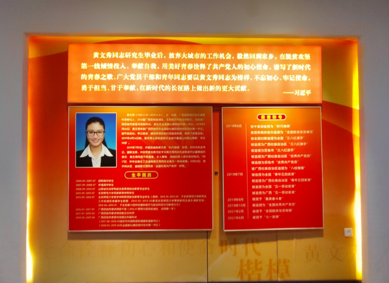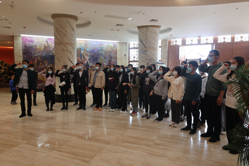 活动在共青团团歌《光荣啊,中国共青团》中拉开帷幕。进入百色起义馆后,全体师生面对鲜红的党旗,高举右拳,肃穆站立,重温入党誓词,时刻警醒自己牢记党员身份,铭记历史,牢记宗旨,不忘初心。随后,全体师生参观了百色起义纪念馆和百色脱贫攻坚展示馆。参观百色起义纪念馆时,师生们认真观看了馆藏历史图片、史料及革命文物,进一步了解了百色起义的历史背景、邓小平、张云逸等老一辈无产阶级革命家艰苦卓绝的战斗以及中国共产党带领全国人民走向胜利的光辉历程。在脱贫攻坚展示馆内,跟随时间的卷轴,师生们见证了这场伟大战役的全面胜利,脱贫摘帽不是终点,而是新生活、新奋斗的起点。脱贫攻坚精神将激励大家在全面推进乡村振兴中继续奋斗,争取更大胜利。师生们还参观了黄文秀先进事迹展,黄文秀同志把青春和热血都献给了脱贫攻坚事业,以实际行动诠释了共产党人的初心和使命,用短暂而精彩的人生谱写了一曲奉献之歌,是全体师生的学习榜样。