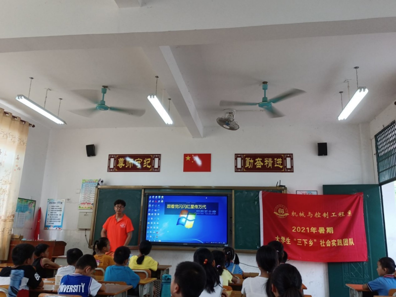 为深入学习贯彻习近平新时代中国特色社会主义思想,贯彻落实习近平总书记在党史学习教育动员大会上的重要讲话和庆祝中国共产党成立100周年大会讲话精神,让广大青年学生勇做担当民族复兴大任的时代新人,在社会实践中受教育、长才干、作贡献。7月16日,我系“凝聚青春力量,助力乡村振兴”社会实践队与岜盆乡综合文化站共同以“永远跟党走,奋进新征程”为主题,结合岜盆乡当地文化特色,以岜盆乡中心小学为线下实践基地,以学生家乡红色文化经典为实践基地,围绕党史学习教育、理论宣讲、乡情观察等方面开展内容丰富形式多样的社会实践三下乡活动。