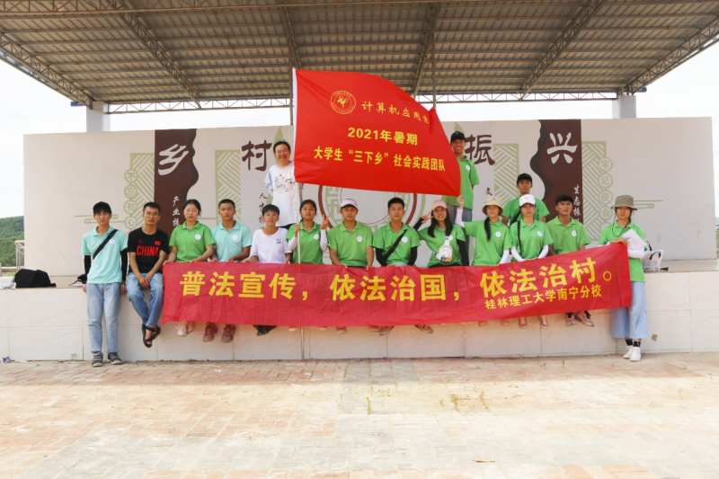 郝佐村团支部书记黄杨茜与实践团成员向村民宣传法律知识