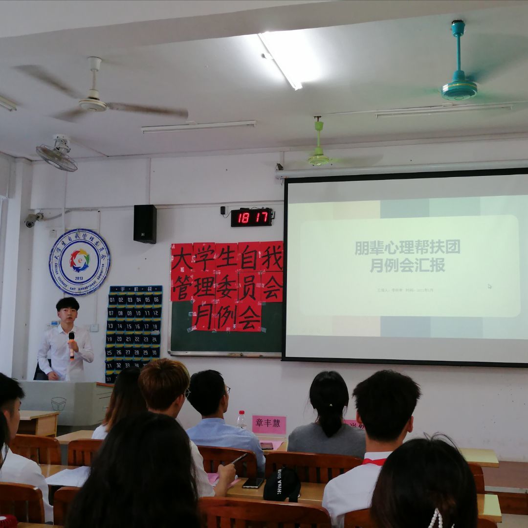 5月13日,分校大学生自我管理委员会在上善楼205教室召开2020-2021学年春季学期第二次月例会,分校学生工作部章丰慧老师、心理健康咨询中心李肖然老师以及大学生自我管理委员会全体成员参加会议。