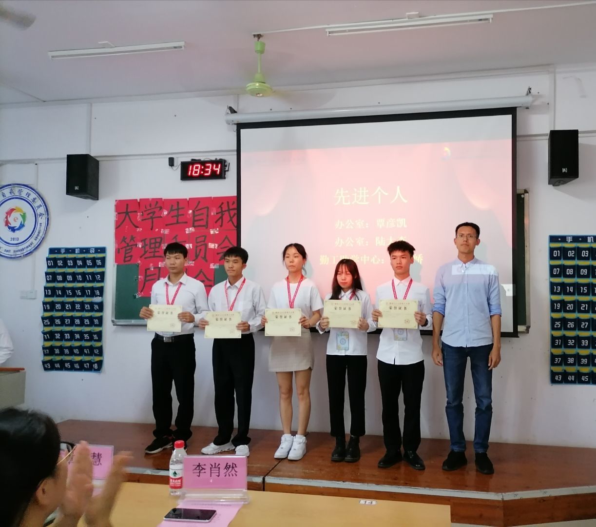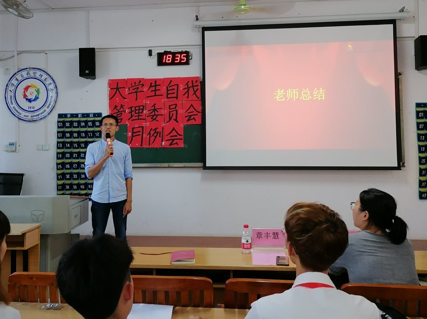 会上,自管委各中心代表依次对四月份工作总结,分别总结了四月份本部门开展的各项工作及活动情况,并详细介绍了下一阶段的工作计划;反思了工作开展中出现的问题与不足,并提出了相应的改进措施。随后,对在四月份工作中表现突出的中心和个人进行表彰,以此鼓励各中心和个人再接再厉。最后,章丰慧老师进行总结发言,他对全体成员提出了几点建议:一是做到学习工作两不误,协调学习与工作的时间和精力;二是扎实开展工作,拒绝形式主义;三是严格秉承自管委的服务宗旨,全心全意为师生服务,不谋私利;四是加强交流,职责明确;五是团结互助,协力合作。