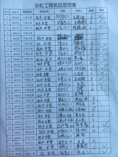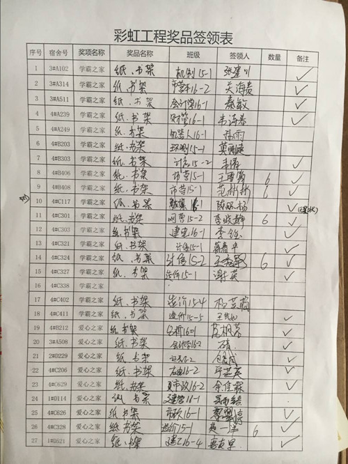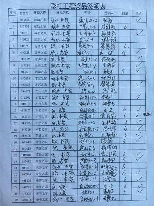 10月9日、10日,分校大学生自我管理委员会在学校行健路,食堂门口为此次彩虹工程获奖宿舍设置了领奖点,供获奖宿舍领取奖状及奖品。