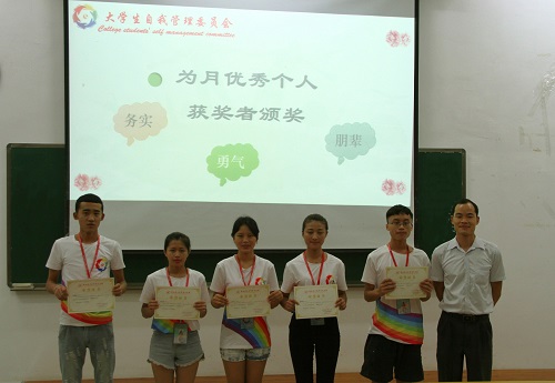 首先,各中心代表依次总结了五月份的各项工作,反思工作中的不足,并提出了有效的解决方法,同时对六月份的工作进行规划。总结经验,规划未来,自管委正是在“脚踏实地与仰望星空”中不断成长。接下来由主席团代表左倩发言,“灵感来源于生活”她鼓励干事们要留心观察生活, 善于点滴积累,就会有所创造。随后大会对五月份月优秀中心、优秀个人、先进个人分别进行表彰颁奖,以资鼓励。