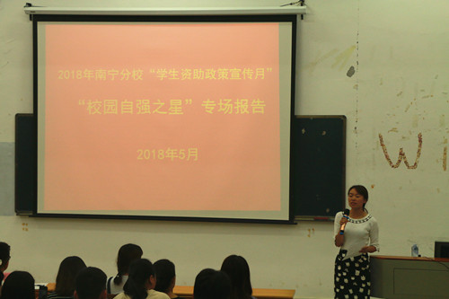 五月的鲜花,绽放年轻的生命;金色的年华,点亮汗水的辉煌。五月的天空,点缀自强的繁星;青春的校园,奏响豪迈的乐章。为了激励受助学生的学习热情,鼓励同学们学习先进赶超先进,不断完善自我,实现个人成才的目的,5月24日,英国上市公司365“学生资助政策宣传月”“校园自强之星”专场报告在启智楼8103和8106顺利举行。学生工作部副主任张川老师,学工部蒋雪梅老师、宋婷婷老师、李晨老师作为嘉宾出席了此次专场报告。