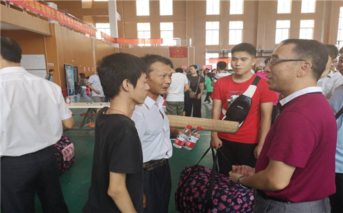 9月8日上午,分校党委副书记梁冬松在学工部负责人的陪同下,来到新生入学“绿色通道”办理处,与家庭经济困难新生代表亲切交谈,详细询问同学们的家庭、专业、生活和入学情况,并为他们发放“贫困生慰问品”。