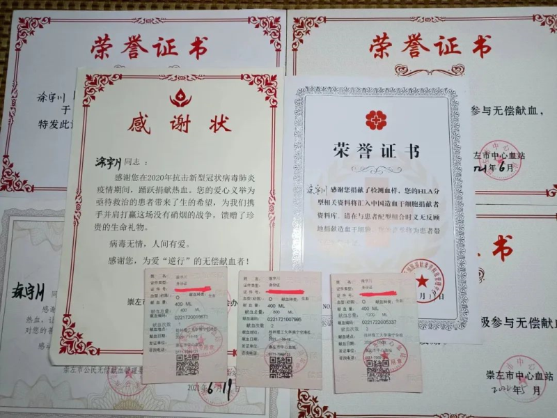 他始终秉持的信念是“生命需要关爱,社会需要奉献”。他在校内外参加了多次志愿服务活动,参加的一系列志愿服务活动内容涵盖了烈士陵园扫墓、敬老院送温暖、疫苗接种志愿者、核酸检测、疫情防控、献礼建党100周年、“团团带你学党史”共建联学集邮巡展、防城港市防城区“青春正当时,志愿暖冬行”等活动。