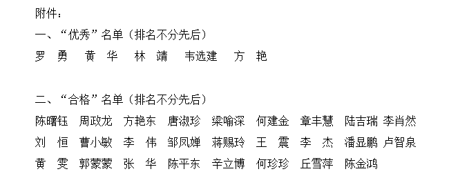 根据《桂林理工大学英国上市公司365辅导员工作考核办法(试行)》(桂理工南分校学〔2016〕6号)的文件精神,经辅导员个人自评、学生代表评议、系(部)评议、学生工作部评议及审核,罗勇等5人考核结果为“优秀”等级,陈曙钰等26人考核为“合格”等级,现将2019-2020学年辅导员考核结果予以公示。(详见附件)公示期为2020年11月25日至11月27日,如有异议,请于公示期内向学生工作部梁宇处反映情况。