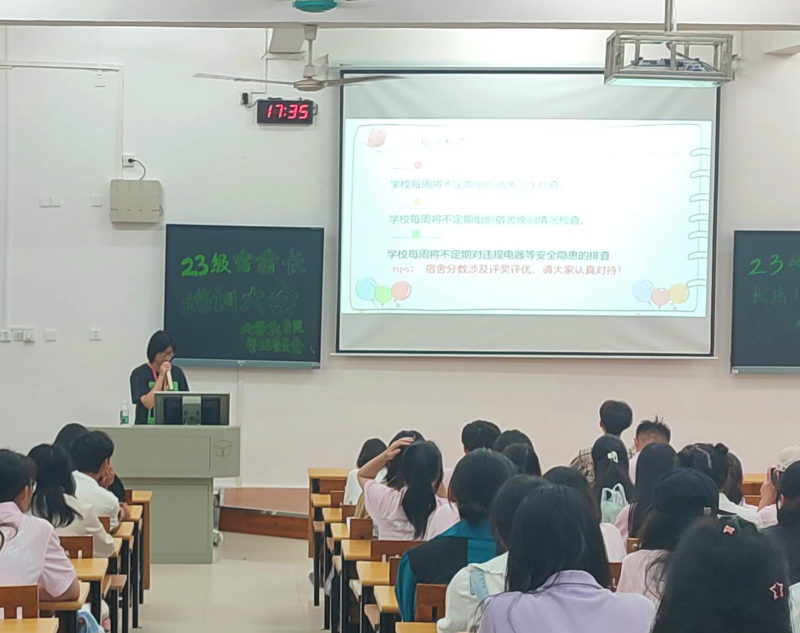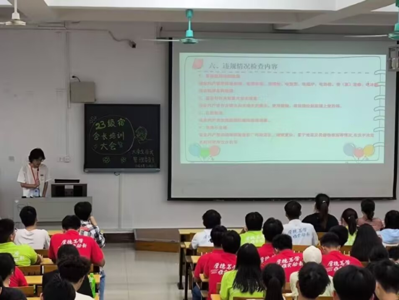 培训会上,首先由公寓社区中心负责人对宿舍卫生检查、宿舍作息时间要求、宿舍违纪情况及处理、宿舍文化活动及宿舍长职责等方面进行了详细地讲解,并就宿舍长们现场提出的疑问做出逐一解答;最后,陆靖媛老师作培训会总结,强调了宿舍长在宿舍文明建设和宿舍管理中的重要作用,希望全体宿舍长担起责任,加强宿舍安全意识与责任意识,明确宿舍管理规定,严格遵守校纪校规,积极团结宿舍成员,努力营造安全文明、舒适和谐的宿舍环境。