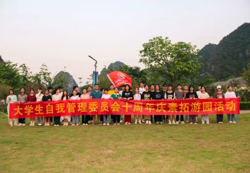 在大学生自我管理委员会成立十周年之际,为进一步增强团队凝聚力,提升团队执行力,增进同学们之间的情谊,回首十年的坚持和奋斗,并在新的征途中再谱新篇。5月20日,大学生自我管理委员会在乐养城营地组织了为期一天的素拓游园活动。