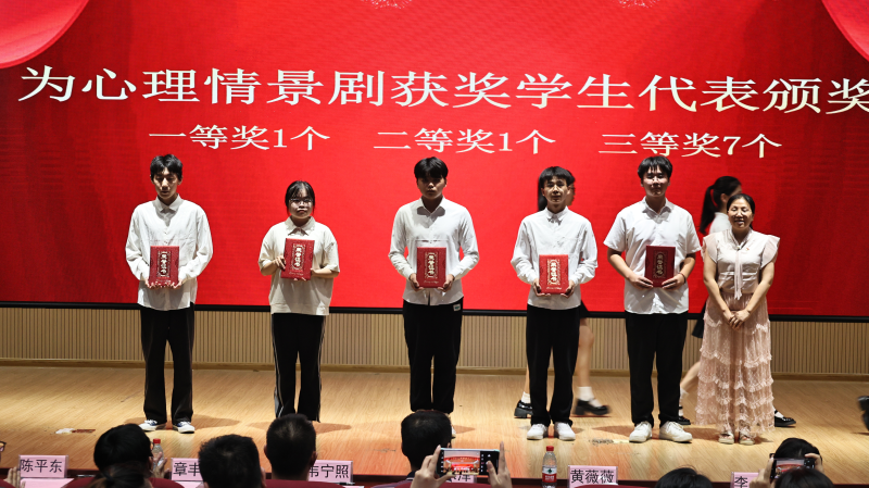 学生工作部负责人宣读了2023年“5·25”大学生心理健康活动月表彰文件,共评选出“心理微电影”获奖作品40个、“心理情景剧”获奖作品9个、“微电影最佳个人奖及最佳人气奖”13人、“心理知识答题”获奖人数738人。与会领导嘉宾为获奖学生代表颁发荣誉证书。