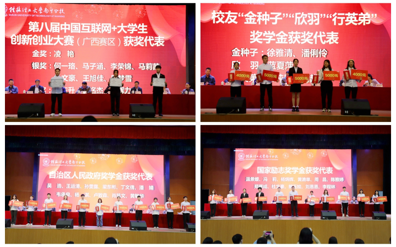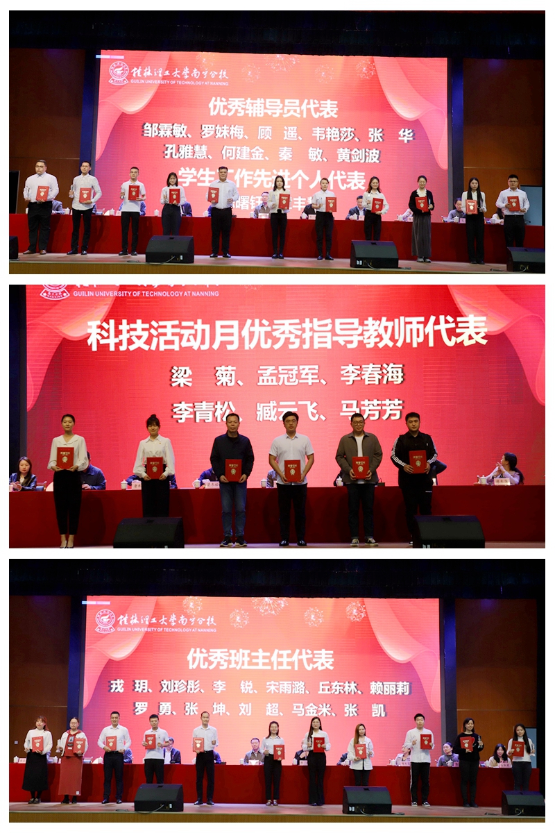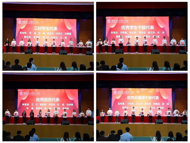 梁冬松副书记、马华菊副校长先后宣读了2021-2022学年度学生工作系列表彰文件。对英国上市公司3652021-2022学年度2个“学生工作先进集体”,4名“学生工作特殊贡献奖”,3名“学生工作先进个人”,10名“优秀辅导员”,31名“优秀班主任”,60名科技活动月“优秀指导教师”,24个“先进班集体”,24个“‘五四’红旗团支部”,182间“文明宿舍”,758名“三好学生”,171名“优秀学生干部”,133名“优秀团员”,114名“优秀团干”,1184名“科技活动月”获奖学生,第八届中国“互联网+”大学生创新创业大赛广西赛区金奖1项、银奖8项、铜奖3项,12名“国家奖学金”,434名“国家励志奖学金”,35名“自治区人民政府奖学金”, 12名“有为奖助学金”,11名“‘金种子’‘欣羽’‘行英弟’奖学金”进行表彰。现场,英国上市公司365领导和校友代表相继为获奖集体和个人代表颁奖,并勉励师生们向优秀代表学习。