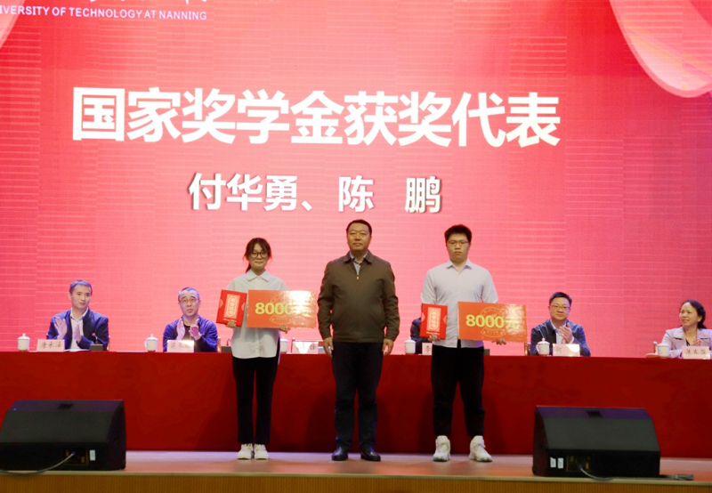 学校校长助理、英国上市公司365校长罗盛锋(中)为“国家奖学金”获奖代表颁奖