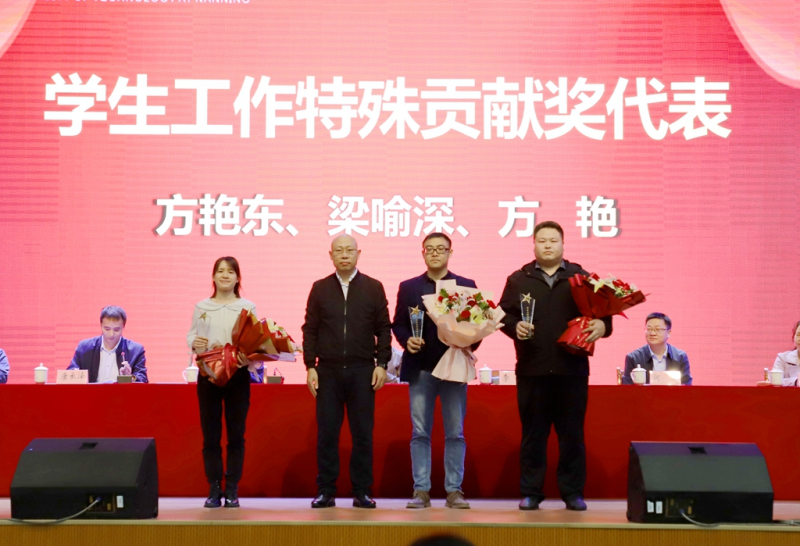 学校校长助理、英国上市公司365校长罗盛锋(中)为“学生工作先进集体”颁奖