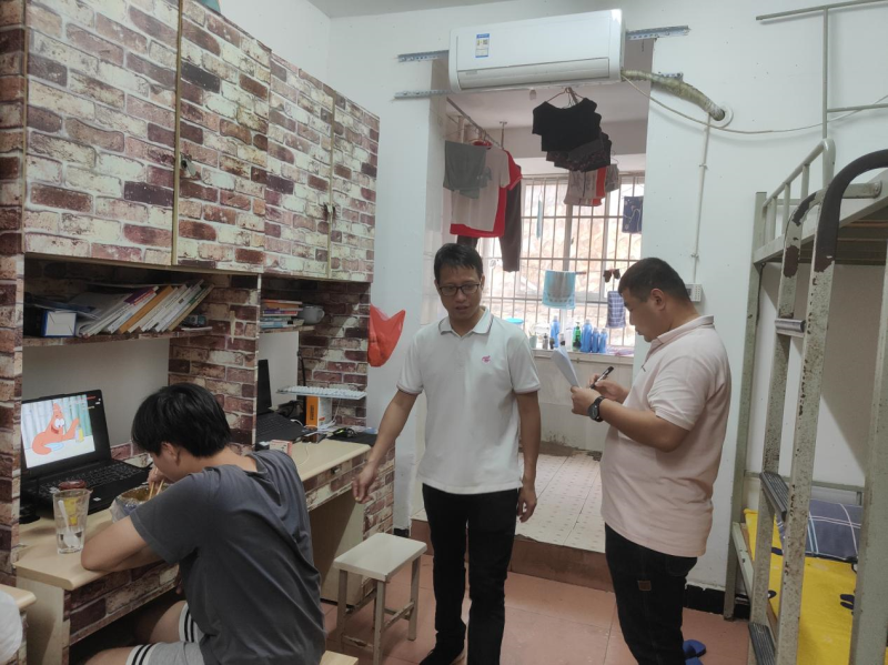 本次检查主要针对宿舍安全和卫生两方面,包括大功率电器的使用、插线板的摆放以及床铺、书桌的整理、地面、阳台的打扫等。检查发现学生宿舍整体情况良好,但仍有个别宿舍出现宿舍用电布线不合理、阳台、洗漱台堆放杂物、卫生较差等情况。老师们对存在的安全隐患和卫生等问题,现场提出了整改意见,并强调宿舍安全卫生的重要性,要求同学们严格遵守宿舍的相关管理规定,保持良好宿舍卫生和安全用电习惯。