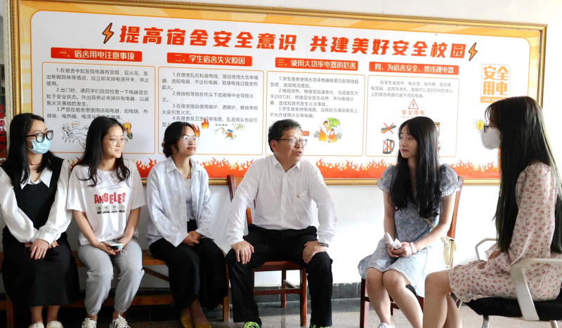 学校党委副书记吴志强(右三)与学生亲切交谈(二)