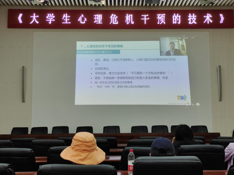 本次培训会分别由浙江大学马建青教授、广西师范大学何昭红教授主讲。马建青教授从多个心理危机典型案例着手,从案例的发生发展到结果的处理,再到经验启示都给予了详尽的说明与阐述,从而引导学生工作者重视学生心理状况、掌握心理辅导方法、善于识别心理危机、可以有效处理危机事件。何昭红教授围绕着突发事件应激会谈技术(CISD)以及情绪稳定化技术等方面对心理危机干预技术进行了详细讲解。