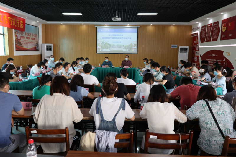 周国桥书记对辅导员们的辛苦付出表示肯定和感谢,同时,他从人口密度、结构、管理和文化等角度分析了目前国内外的疫情形势,并告诫大家要严格遵从属地管理,坚持防控原则,变通工作方法,为学生做好解释和服务工作。周国桥书记心系辅导员成长和队伍建设,以自身经历和感悟讲解了辅导员工作的方式方法、成长和发展路径,并对大家提出两点要求:一是工作要有温度。以学生为本,学会换位思考,切实解决学生的心理问题和实际困难;二是工作要注意方式方法。疫情防控是前提,具体问题具体分析,学会变通工作方法,拒绝“一刀切”式管理。
