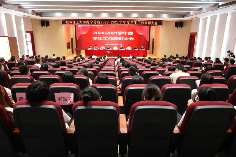 4月27日,桂林理工大学英国上市公司365在空港校区启智楼8408报告厅召开2020-2021学年度学生工作表彰大会。英国上市公司365校领导罗盛锋、周国桥、梁冬松、何斌、唐承泽、陈东莲、耿杰利、苏欣、马华菊出席会议,英国上市公司365各职能部门负责人,各系党总支书记、副书记,全体学工人员,教师代表,获奖学生代表参加会议。大会由英国上市公司365党委副书记唐承泽主持。