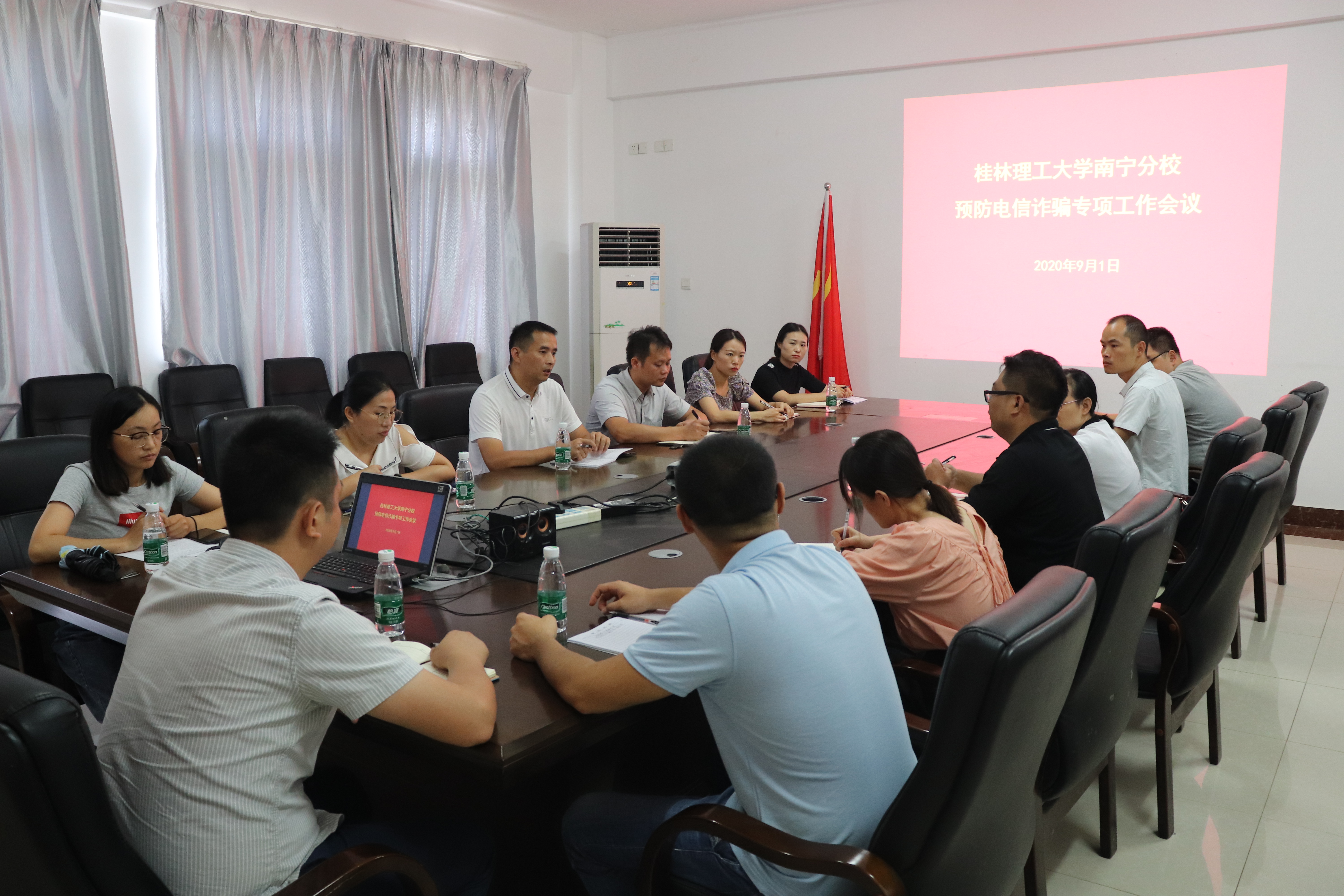 会上,学生工作部负责人通报了近期学校学生遭受诈骗的案情,深刻分析了当前分校防范电信诈骗工作所面临的严峻形势,并就2020年桂林理工大学英国上市公司365防范电信网络诈骗安全活动月工作进行部署。