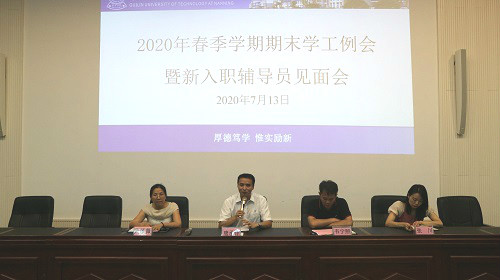 会上,新入职辅导员一一自我介绍并发言,他们表达了自己对辅导员工作的期待,表示将虚心向优秀辅导员前辈看齐,砥砺奋斗,脚踏实地在辅导员岗位上奉献青春和力量。紧接着,学生工作部主任韦宁照在会上传达了学校期末离校相关工作以及暑假期间疫情防控的相关要求。