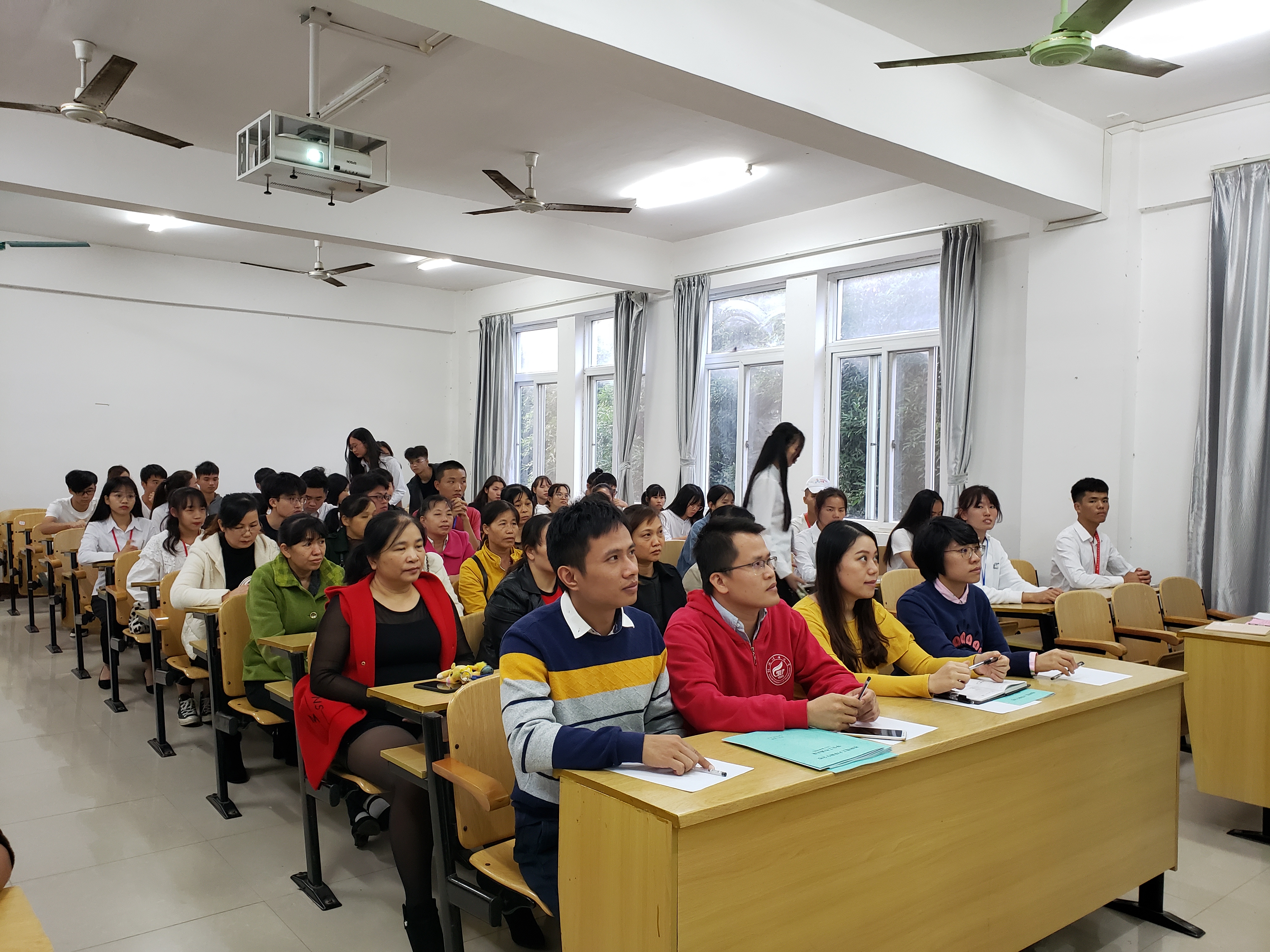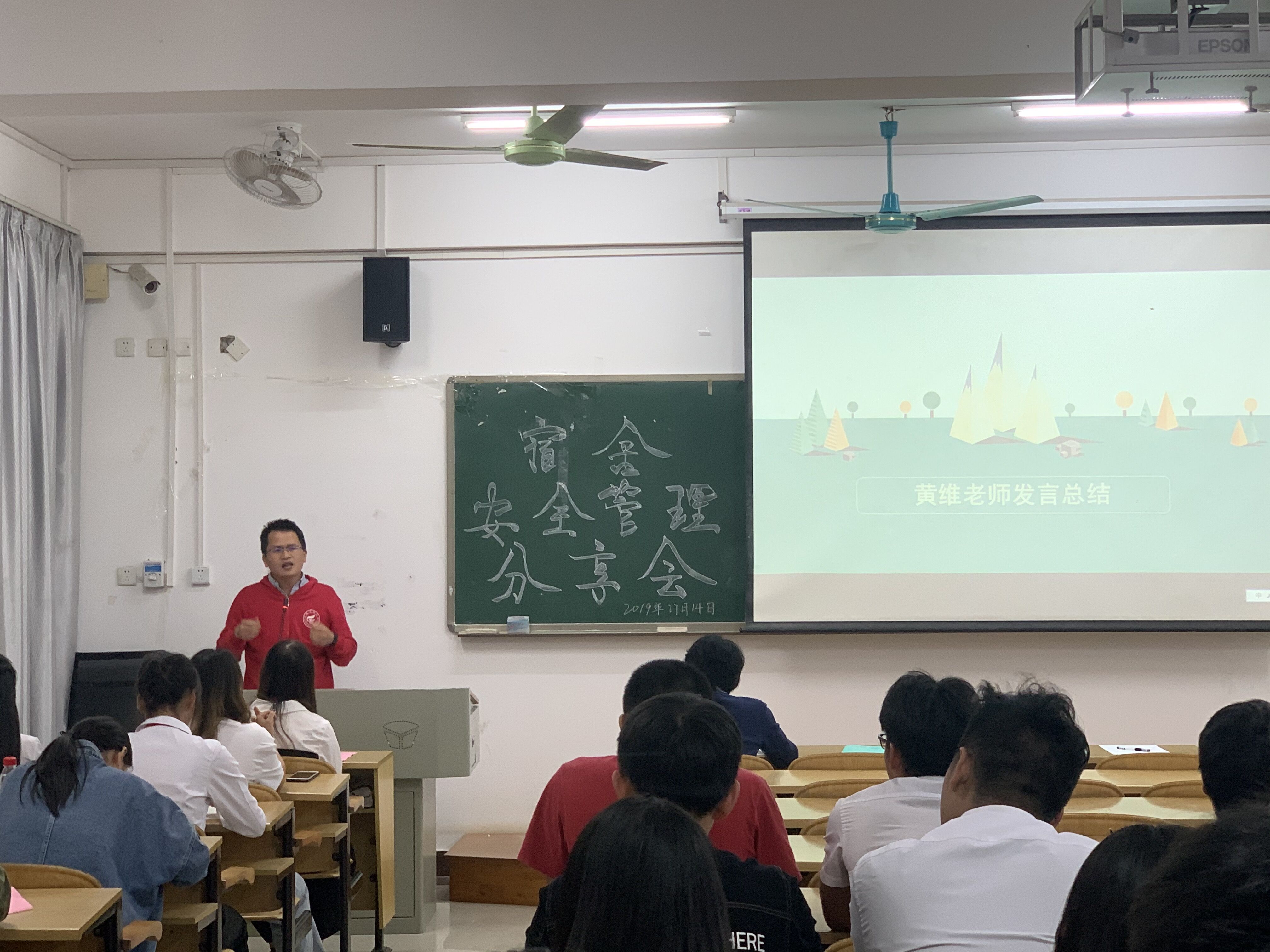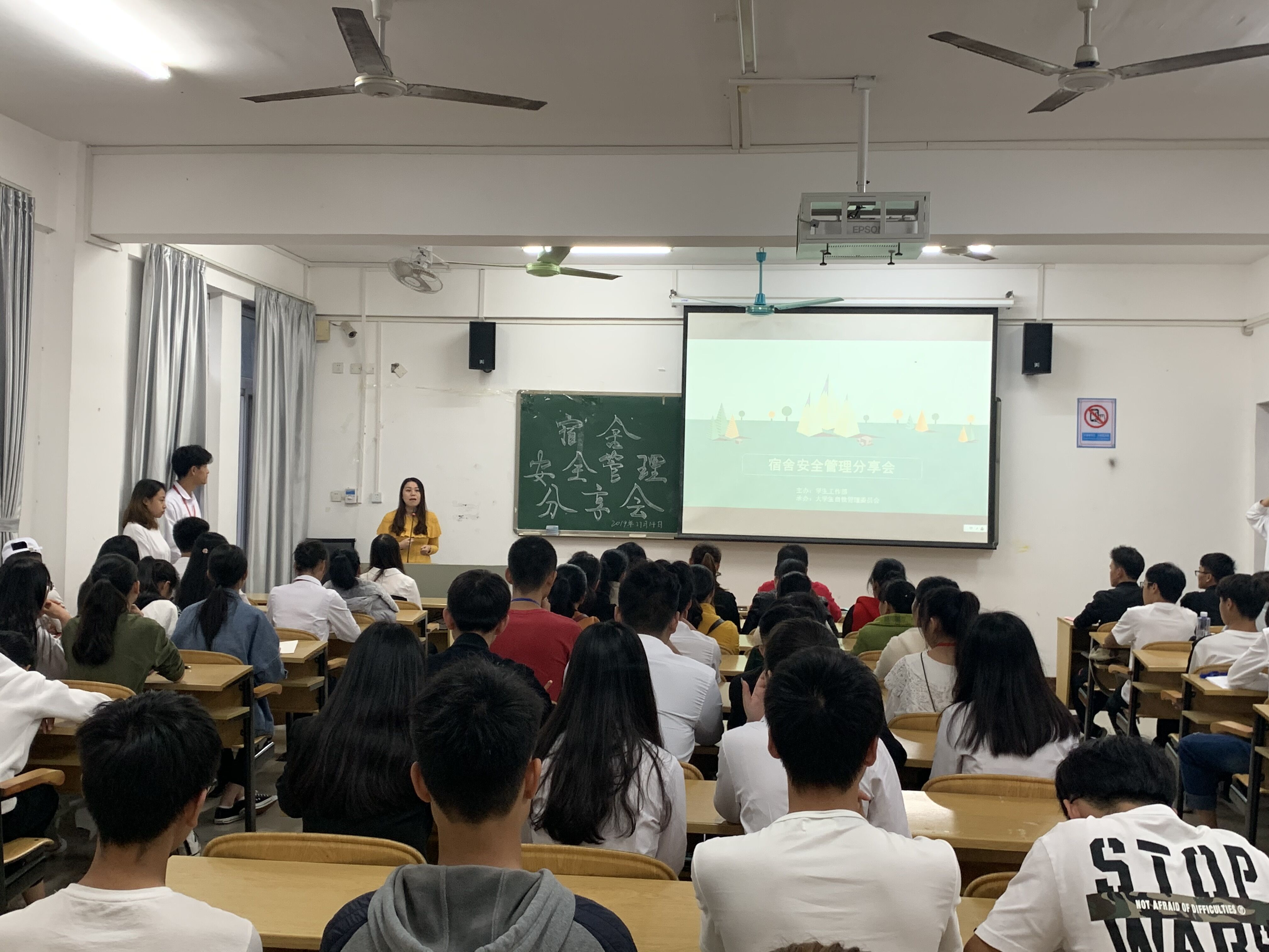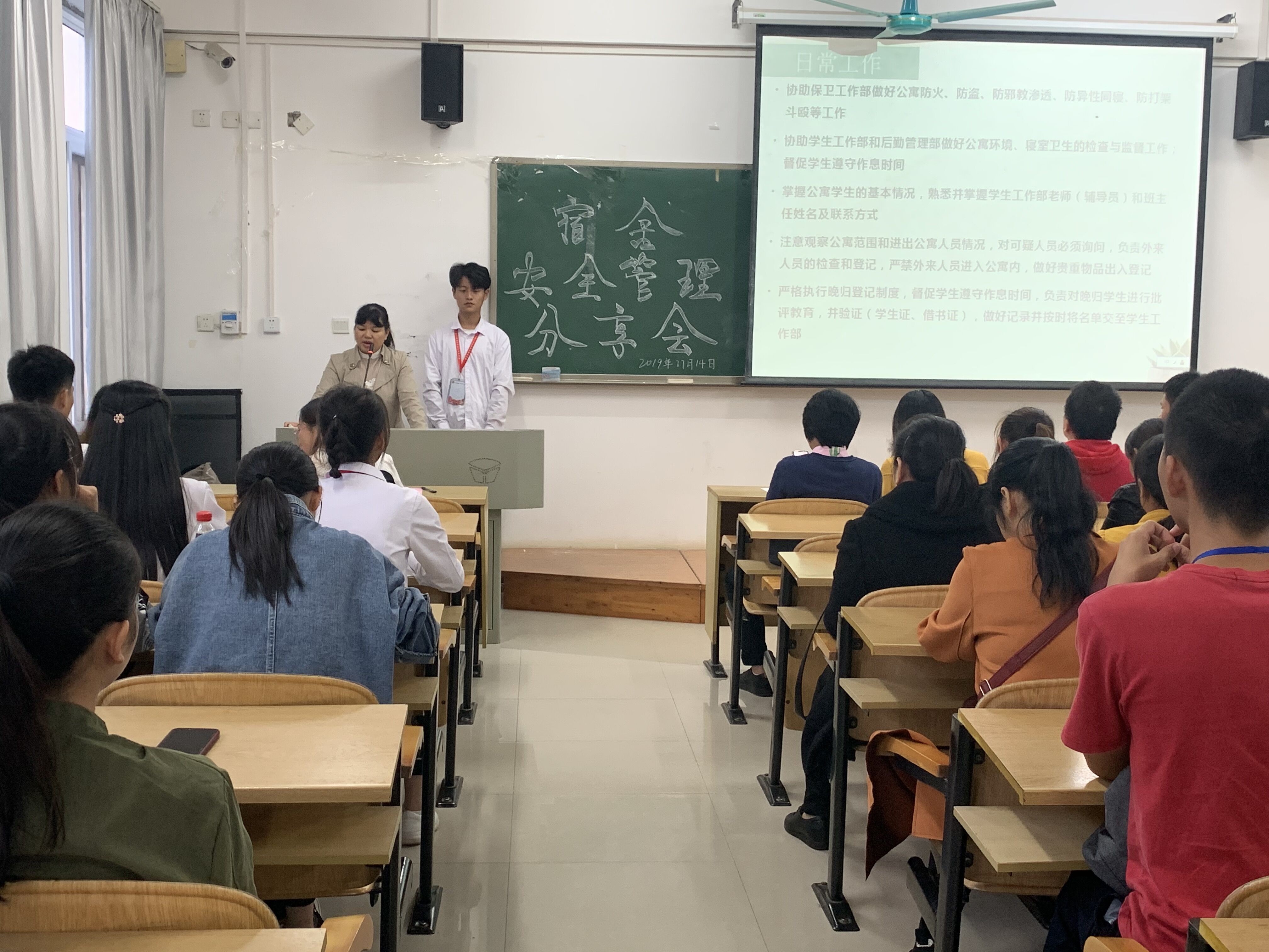 11月14日下午,由学生工作部与后勤管理部联合主办、大学生自我管理委员会承办的宿舍安全管理分享会在践行楼208教室成功举办。学生工作部副主任黄维、后勤管理部副主任韦冬晓出席了分享会,学工部梁宇老师、计算机系陆吉瑞老师、全体宿舍管理阿姨,大学生自我管理委员会公寓中心学生干部、各系学生会生活部学生干部参加了本次分享会。