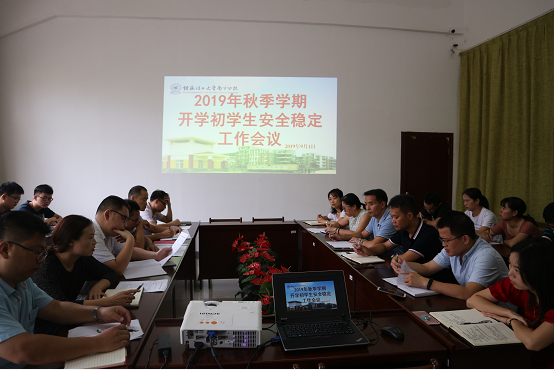 9月1日上午,分校学工系统在学工会议室召开2019年秋季学期开学初学生安全稳定工作会议。分校唐承泽副书记出席会议,学生工作部、团委相关负责人、各系党总支系副书记、全体辅导员参加会议。