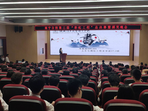 2019年6月11日晚,由分校学生工作部主办,大学生自我管理委员会承办的第三届“彩虹工程”总决赛暨颁奖晚会在启智楼408报告厅举行。分校学生工作部副主任黄维、各系负责宿舍管理工作的老师出席晚会并为决赛宿舍进行评分,部分参赛宿舍成员及学生代表共同观看了比赛。