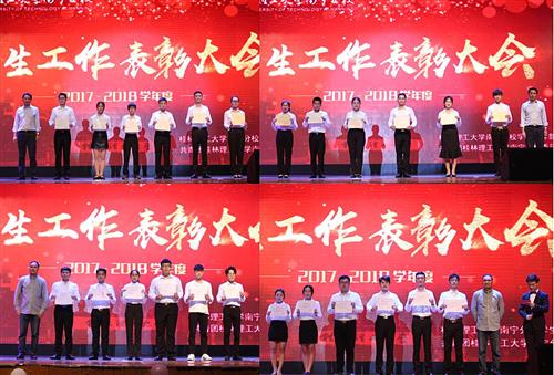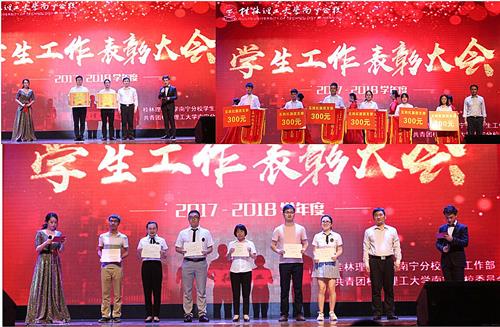 大会展示了分校2017-2018学年度学生工作硕果累累的宣传视频,对分校“学生工作先进集体”冶金与资源工程系、机械与控制工程系,黄维等12名“优秀辅导员”,吴小华等37名“优秀班主任”,工程管理2015-2班等21个“先进班集体”,黄绍缘等597名“三好学生”,邓金达等133名“优秀学生干部”,杜志伟等103名“优秀团员”,任旺等81名“优秀团干部”,彭怡等59名同学校地合作·扶智工程“先进个人”,工程管理15-1团支部等21个“‘五四’红旗团支部”,莫福金等48名“创新杯”科技活动月“优秀指导教师”,“创新杯”科技活动月“优秀组织”集体机械与控制工程系、土木与测绘工程系等先进集体、个人代表进行了表彰和奖励。