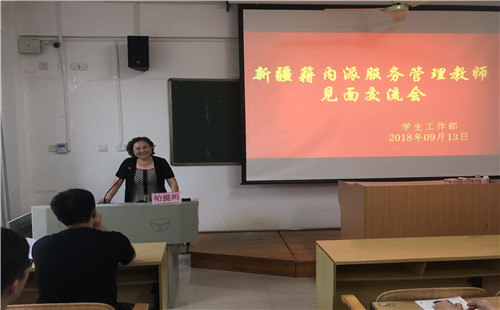 首先,学工部副主任张川向大家介绍了新疆内派服务管理教师帕提玛·阿斯克,同时,说明了新疆籍内派服务管理工作的目的和意义、新疆籍内派服务管理教师的主要职责,并希望同学们加强与帕老师的沟通交流,生活上多关心帮助她,工作上要积极配合她。