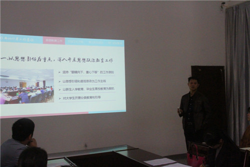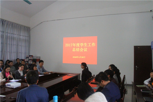 会上,冶金系黄运堪、机械系张业娟、土木系邹凤婵、电气系章丰慧、计算机系方艳、经管系潘显鹏、团委谢欢、学工部韦宁照分别学生教育、管理、资助、就业和辅导员队伍建设等五个方面对2017年学校的学生工作进行总结回顾,并对新一年的学生工作提出设想与展望。