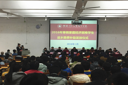 为了深入贯彻落实国家资助政策,体现对家庭经济困难学生的关怀,帮助家庭经济困难学生度过一个祥和的春节和寒假,1月14日下午,分校在空港校区启智楼108教室举行了简单而温暖的家庭经济困难学生返乡路费补助发放仪式。分校党委副书记梁冬松出席并为家庭经济困难学生代表发放补助金,学生工作部、团委负责人,各系党总支书记及学工组长、辅导员和受助家庭经济困难学生共300多名师生参加。仪式由学生工作部主任韦宁照主持。