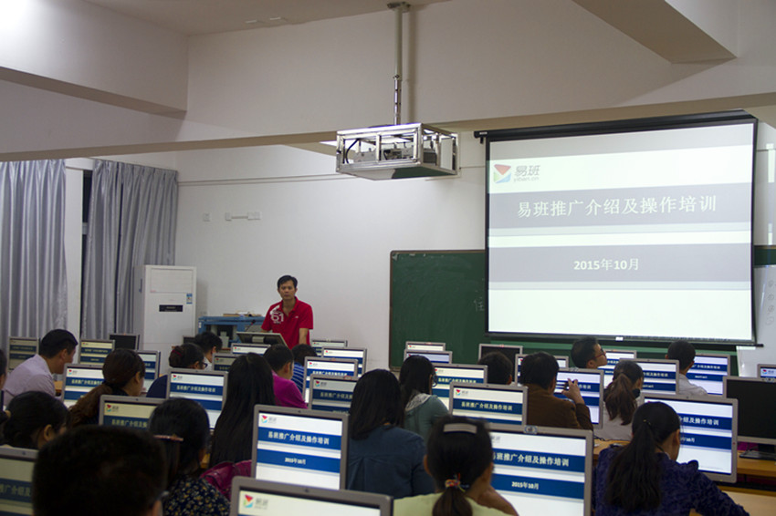 韦主任首先就易班的基本介绍、重要意义、主要功能和个人使用感悟进行了较为系统的介绍。接着韦主任着重讲解易班的几个重要功能,主要包括基础平台和公共平台的使用,并做现场操作演示。最后他指出,各系要严格按照学校的工作方案推进易班建设,一方面能让学生及时、快捷地了解学校和老师发布的通知,保持师生亲密沟通;另一方面通过公共平台可以加强公共群体之间的实时交流,促进整个学工队伍工作能力的提升。