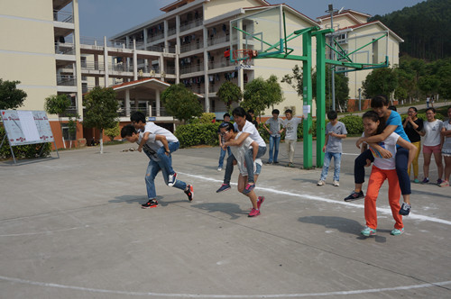 此次素质拓展活动以宿舍为单位,活动项目分别有20米背人接力、三人四足、连锁加速、转移核废物等。活动中,参赛队员斗志昂扬、配合默契,活动现场围观的同学们也热情高涨,活动在同学们的欢声笑语中取得了圆满成功。