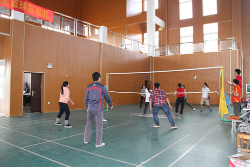 最后,各组还循环进行了气排球比赛。比赛过程中,各组除了展示技术上的比拼外,双方的教练还场下通过“唇枪舌战”,相互地夸赞、“吹捧”对方的场上队员,往往造成对方球员的失误,给自己的队伍制造更为有利的得分机会。场内外的欢声笑语,让体育馆成为一片欢乐而温馨的海洋。