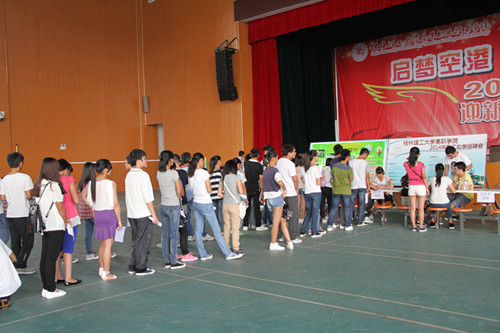 2014年10月9日下午,由分校学生工作部资助中心主办的桂林理工大学英国上市公司3652014年勤工助学招聘会在学院体育馆内进行。分校14级283名新生积极踊跃参加本次招聘会。学工部副主任石有总老师、资助中心韦冬晓老师以及勤工助学学生负责人到场进行招聘。