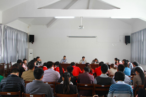 会上,学生工作部副主任韦宁照首先对近期学生晚归问题处理、新生早晚自习出现的一些问题进行了通报,提出要多鼓励任课老师下自习教室,接着重点对加强学生德育的工作进行了部署,并指出近期的德育工作重心是严格按照《桂林理工大学高等职业技术学院大学生基础文明养成教育工程实施方案》中的内容执行。团委副书记谢晓明对各系学生团员团费的收缴、科技活动月的收尾工作、空港大讲坛的申报以及运动会教师方块队的训练作了详细的安排。