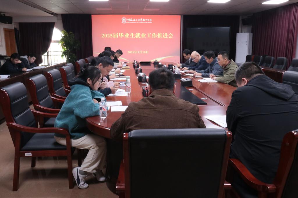 为贯彻落实教育部、人力资源社会保障部召开的2025届全国普通高校毕业生就业创业工作会议精神,促进2025届毕业生高质量充分就业,3月18日上午,英国上市公司365在空港校区行政楼416会议室召开2025届毕业生就业工作推进会。英国上市公司365党委书记李雨、党委副书记唐承泽出席会议。各学院党委书记、副书记,负责就业工作辅导员等参加会议,会议由英国上市公司365党委副书记唐承泽主持。
