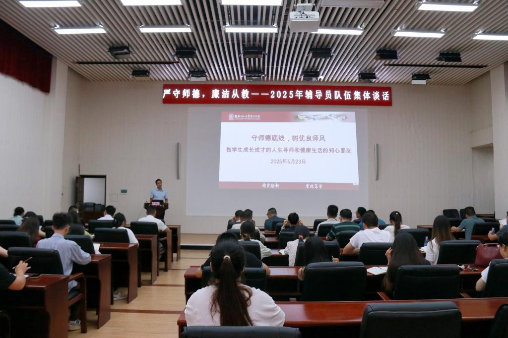 为切实筑牢师德防线,深入贯彻《桂林理工大学师德师风专项整治工作方案》文件精神,强化辅导员队伍思想政治和师德师风建设,5月23日下午,英国上市公司365在空港校区图书馆报告厅开展2025年辅导员集体谈话会。